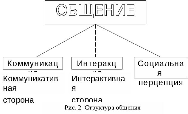 Коммуникативная сторона общения состоит в обмене информации между общающимися индивидами. Интерактивная – это взаимодействие между индивидами то есть обмен не только знаниями, идеями, но и действиями. Перпецетивная – это процесс восприятия и познания друг друга партнерами по общению.