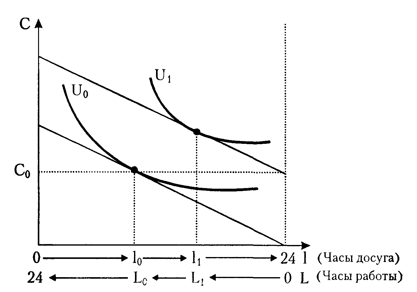 Общий спрос на труд зависит от количества предприятий, размеров их производства и распределения доходов на потребление и инвестиции.