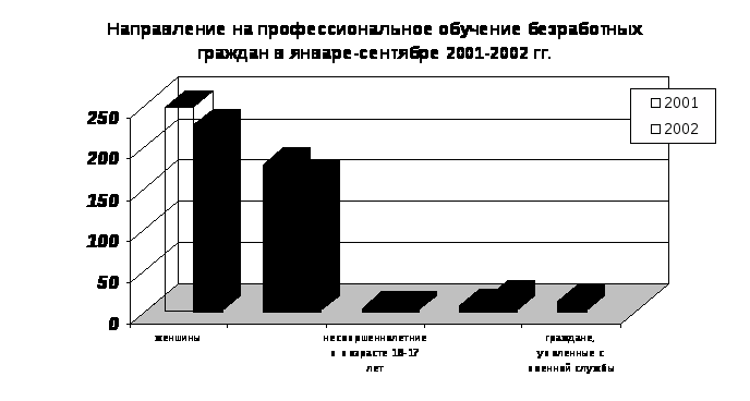 За 2002 г. Службой занятости населения г. Томска было направлено 599 чел. на профессиональное обучение. 569 чел. из обучавшихся закончили профессиональное обучение и 565 чел. из них — трудоустроены.1