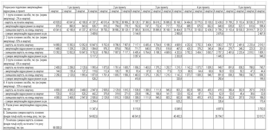 Прогноз амортизаційних відрахувань при експлуатації основних засобів в інвестиційному проекті міні-гольф клубу