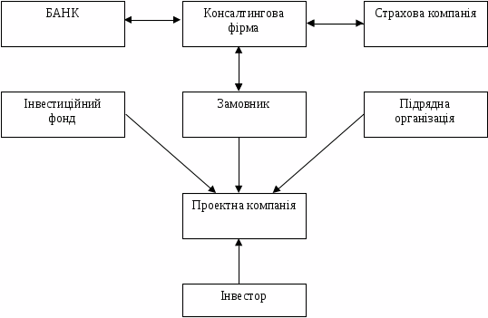 Складність організації фінансування таких проектів передбачає тривалий термін їх реалізації, залучення широкого спектру технічних, економічних, фінансових та юридичних послуг різних суб’єктів що беруть участь у підготовці та реалізації проекту.