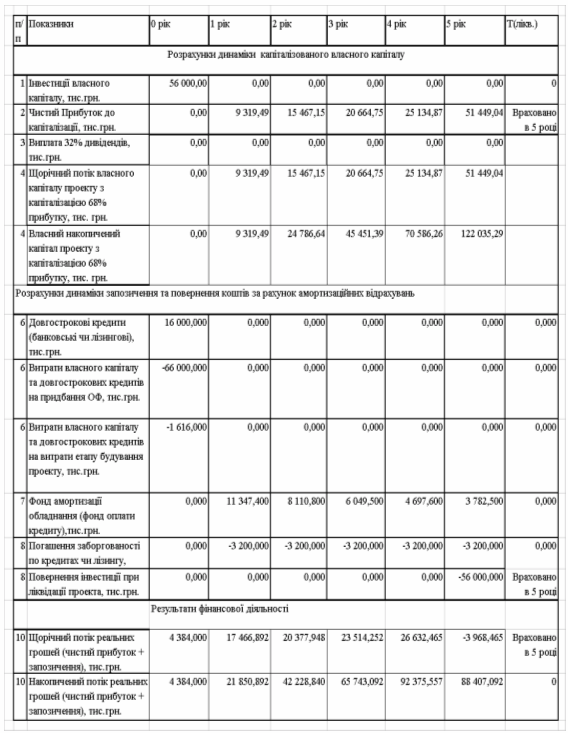 Показники динаміки фінансової діяльності в варіанті №3 інвестиційного проекту (акціонерний капітал+лізинг обладнання)
