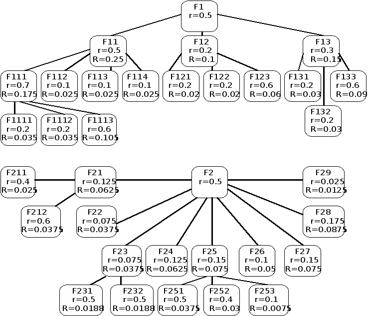 2) Для подгруппы F2 уменьшения затрат на разработку требуют функции F21, F26, F29, F211 и F232.