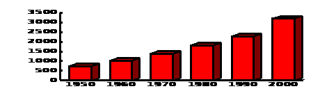1). Быстрые темпы роста городского населения, особенно в менее развитых странах, где происходят стихийные, не поддающиеся контролю миграции из села в город. В мире с 1950 г. население городов увеличилось в 4.37 раза.