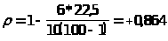 Показатель показывает, как отличается полученная при наблюдении сумма квадратов разностей между рангами от случая отсутствия связи.