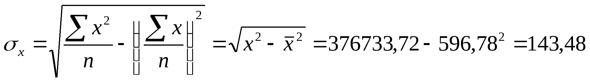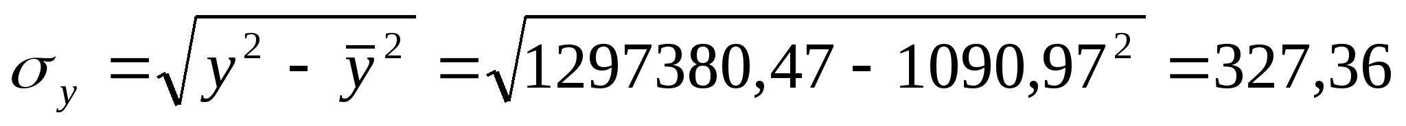 Используя данные таблицы 1 я рассчитала линейный коэффициент корреляции r. Но чтобы использовать формулу для линейного коэффициента корреляции рассчитаем дисперсию результативного признака σ>y>: