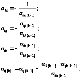 Далее находится матрица, обратная к A, методом m-кратного пересчета элементов [3,с.358] по рекуррентным формулам: