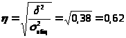 2 =2,85 - выборочная дисперсия для результативного признака (рассчитана в пункте 3 задания),