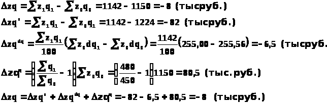 Данная система индексов позволяет определить составляющие общего абсолютного изменения затрат на производство в отчетном периоде по сравнению с базисным.
