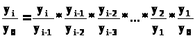 Между цепными и базисными относительными величинами динамики существует определенная взаимосвязь. Базисная относительная величина динамики равна произведению цепных относительных величин динамики, взятых в виде коэффициентов за весь анализируемый период.