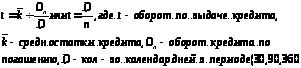 Пок-ли оборачиваемости кредита: 1) время оьорачиваемости кредита, кот.хар-т среднее число дней пользования кредитом: