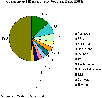 По данным IDC, на российском рынке ПК в III квартале 2001 г. в пятерку лидеров по объемам поставок (в количественном выражении) вошли: