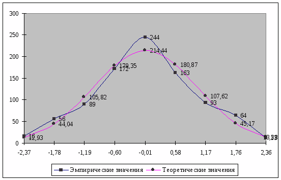 В связи с тем, что табличные значения рассчитаны для непрерывно изменяющегося признака с дисперсией равной 1, необходимо скорректировать полученные частости на фактическую величину интервала и среднеквадратическое отклонение.