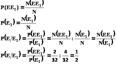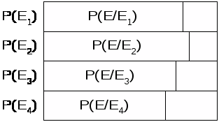 Площадь прямоугольника – это пространство элементарных событий (число единственно возможных равновозможных исходов). Площади кругов Е>1> и Е>2> соответственно – это числа исходов благоприятствующих событиям Е>1> и Е>2>.
