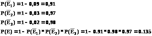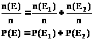 Суммой или объединением событий Е>1> и Е>2>, называют событием Е, состоящим в появлении события Е>1> или Е>2> или обоих этих событий.