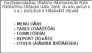 Ñëåäóþùèé øàã - ïðîåêòèðîâàíèå ýêðàííûõ ôîðì (âíåøíèé âèä ìåíþ,îò÷åòà è ïðî÷.)  ýòîì íàì ïîìîãóò ñîîòâåòñòâóþùèå äèàëîãîâûå îêíà. Åñëè íåîáõîäèìî, ìîæíî ïåðåéòè ê ïðîåêòèðîâàíèþ ñëåäóþùåé ïðîöåäóðû è ò.ä. Ïîñëå îêîí÷àíèÿ îôîðìëåíèÿ ýêðàííîé ôîðìû, îïèñàíèÿ ïîëÿ è ïðî÷. íåîáõîäèìî ñîõðàíèòü ýòè îïèñàíèÿ, íàæàâ êëàâèøè Ctrl è Enter.