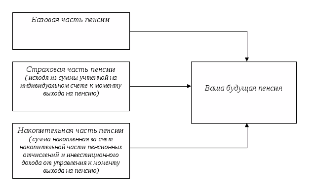 Новая схема выглядит приблизительно так В соответствии с Федеральным законом от 17.12.01 г. № 173-ФЗ " О трудовых пенсиях в Российской Федерации" трудовая пенсия складывается из трех составляющих: