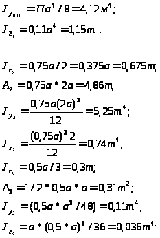 Проверим правильность определения центра тяжести. Статический момент всей фигуры относительно осей, проходящих через центр тяжести, равен нулю.
