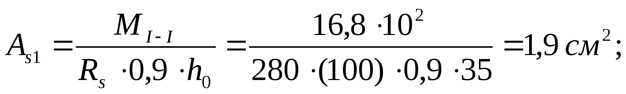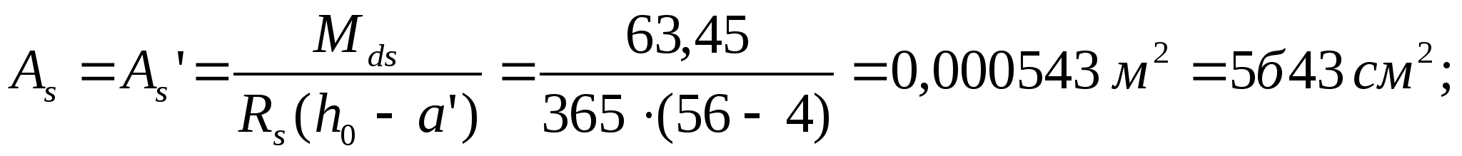 Необходимая площадь сечения арматуры из условия прочности сечения: