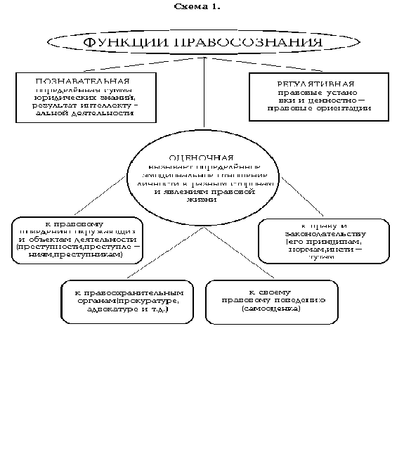 1. В правосознании отражаются лишь те явления, которые составляют правовую сторону жизни общества. Оно охватывает процесс создания правовых форм, реализацию их требований в общественной жизни. Политические, нравственные и другие идеи и представления тоже активно воздействуют на формирование и реализацию норм права. Но прежде чем получить выражение в правовых нормах, в практике их применения, они должны пройти через правосознание, то есть получить правовую форму в виде правовых идей и представлений.