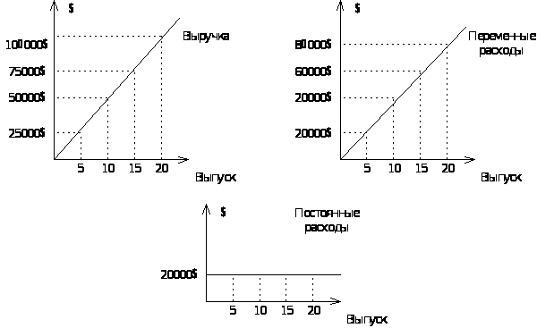 1. Поведение общих затрат и выручки жестко определено и линейно в пределах области релевантности. Это предположение верно лишь для тех случаев, когда изменение выпуска продукции фирмы невелико по сравнению с емкостью рынка данной продукции. Иначе нарушается линейность зависимости между объемом выпуска и выручкой.