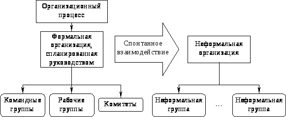 Формальная организация создается по воле руководства. Но как только она создана, она становится также и социальной средой, где люди взаимодействуют отнюдь не по предписаниям руководства. Люди из разных подгрупп общаются за чашкой кофе, во время собраний, за обедом и после работы. Из социальных взаимоотношений рождается множество дружественных групп, неформальных групп, которые все вместе представляют неформальную организацию.