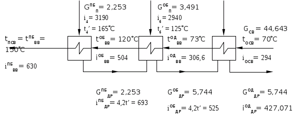 2 Розрахувати термодинамічні параметри підігрівників мережевої та живильної води.