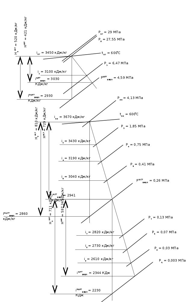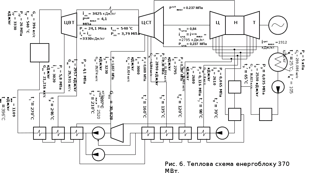 Розрахувати теплову схему блоку ТЕС потужністю ______ МВт та визначити головні конструктивні характеристики теплофікаційних та конденсаційної установок в обсязі: