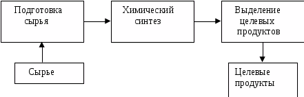 Типовая технологическая схема производства состоит из стадий подготовки сырья, химического синтеза, выделения и очистки целевых продуктов.