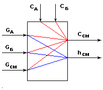 Схема для реакции типа А(ж) + В (г) D (г-ц.пр)+С (ж).