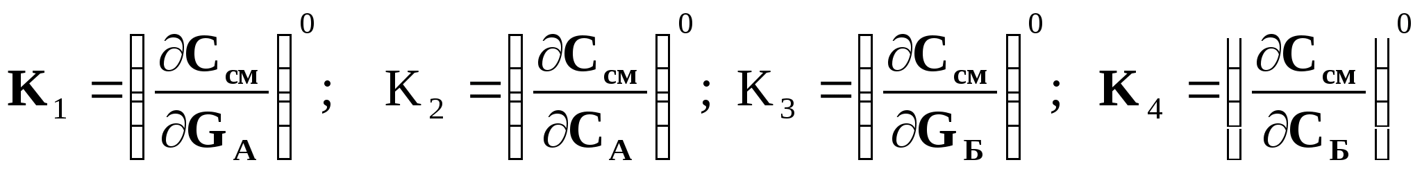 Для технологических процессов - это технологические критерии максимизации качества или максимизации выхода целевого продукта.