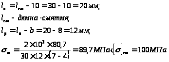 Основным уравнением расчета шпоночных соединений является проверка работоспособности на смятие.