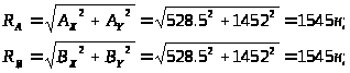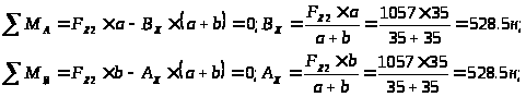 Подшипники пар А и В воспринимают внешнюю нагрузку F>Ra>=R>A>=1545н; F>Rb>=R>b>=1545н;