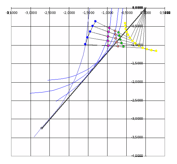 =arcsin (1/M)=arcsin (0,77) = 50,5o к отрицательной вещественной полуоси, строят окружности с центрами на отрицательной вещественной полуоси, касающиеся одновременно луча АФХ разомкнутой системы при различных значениях Т >и>. Измеряют в соответствующем масштабе радиусы полученных окружностей и рассчитывают: K рег = [М / ( M2-1)] * (1/) = 1,88/.