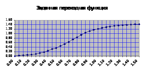 На плоскости настроек регулятора строим зависимость К >рег> от Т >и> (рис.5.) и находят точку с наибольшим отношением К >рег> / T >и> (точка касания прямой, выходящей из начала координат). Настройки соответствующие, этой точке K рег. oпт. = 0,65 % хода // oC и Т и. oпт. =0,55 c, обеспечивают минимальное значение квадратичного интегрального критерия качества при М = = 1,3. Зависимость К рег от Т приведена на рис.3.