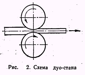 Прокатные станы бывают двухвалковые (дуо-станы), трехвалковые (трио-станы), четырехвалковые (двойные дуо-станы) и многовалковые. Д у ос таны в каждой рабочей клети имеют по два валка. Такие станы подразделяют на нереверсивные и реверсивные. Нереверсивные станы имеют постоянное направление вращения валков, и прокатка производится в одну сторону. При прокатке верхний валок используется для обратной подачи заготовки.