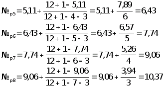 3.Выбираем шесть точек ( №>pi> ) равномерно расположенных по всей информации: 2,46;6,43;10,37.
