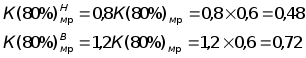 Доверительные границы рассеивания К(80%)>мр> определим по формулам: