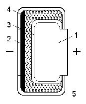 4 – картон, пропитанный электролитом; 5 – полихлорвиниловая плёнка.