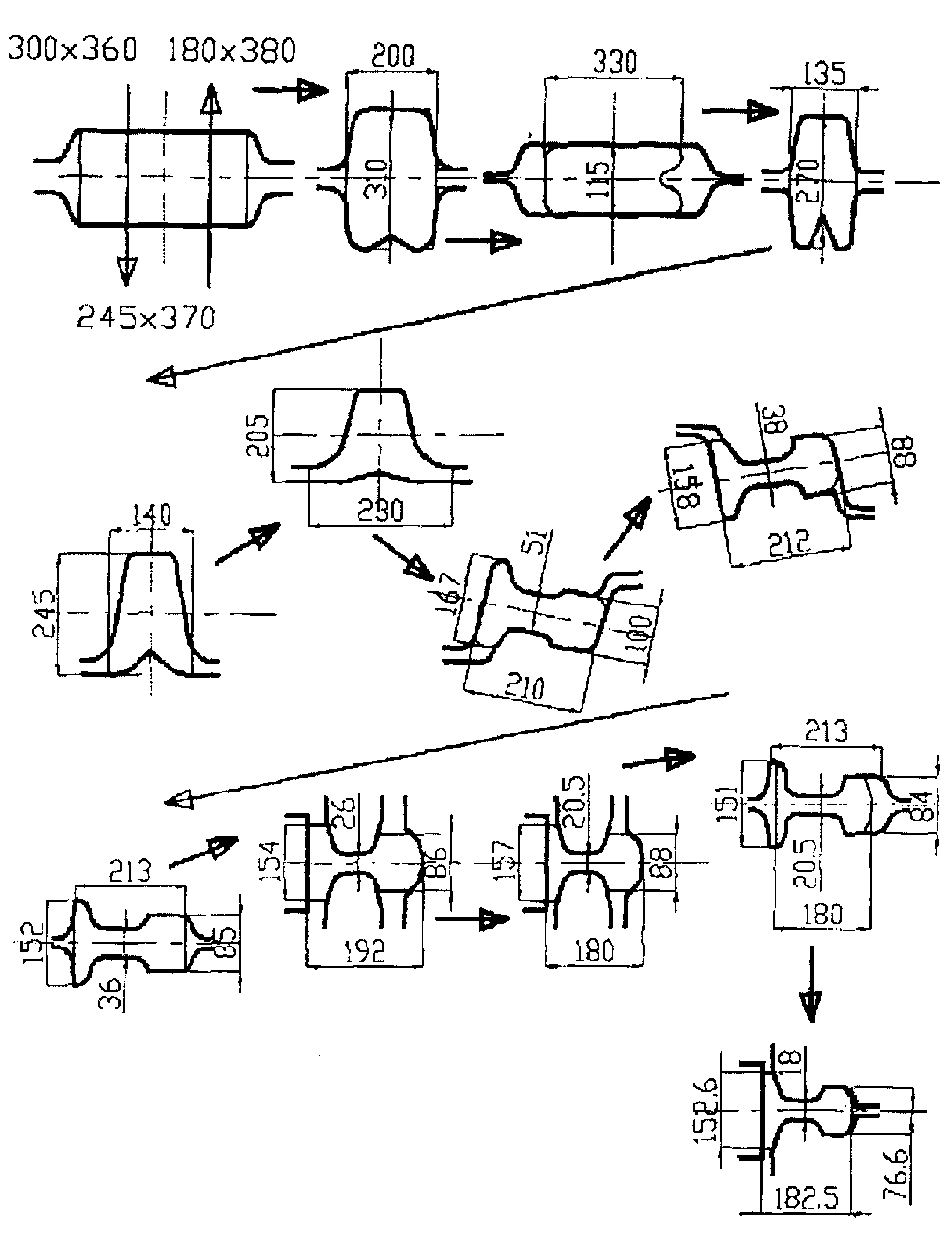 13.2.2. Технологические схемы прокатки рельсов Р65 с применением универсальных клетей