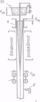 Первый (нижний) характерен для случая сравнительно высокого сопротивления стопорной пары. Струя жидкого металла неплотная, имеет малую кинетическую энергию и тенденцию к периодическим движениям по стенкам стакана.