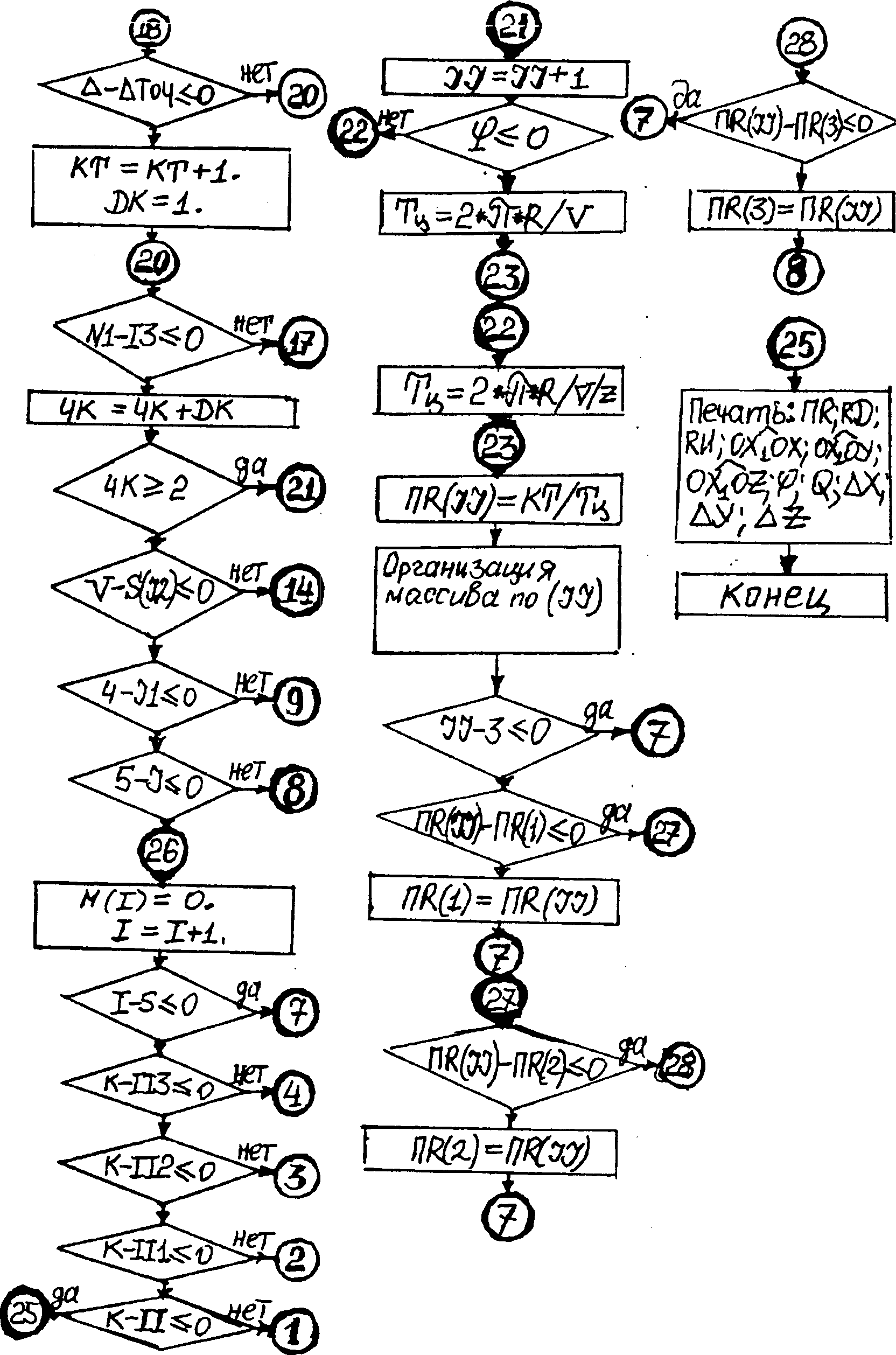 б) Если радиус инструмента Ru=/0, а его кромки представлена линией окружности и при этом на печать выводится условие Б=/(V); А=f(V), то из этого следует, что схема формообразования соответствует точению, а инструмент. ротационный резец. В противном случае: Б=f(V), А=f (S - движения подачи). Процесс соответствует фрезерованию, а инструмент - фреза, что также предусмотрено алгоритмом.