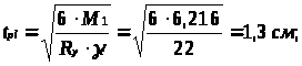 Товщина накладки tн = Abн/hbн = 9,7/10 = 0,97 см;