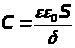 Для плоского конденсатора электрическая емкость определяется выражением: