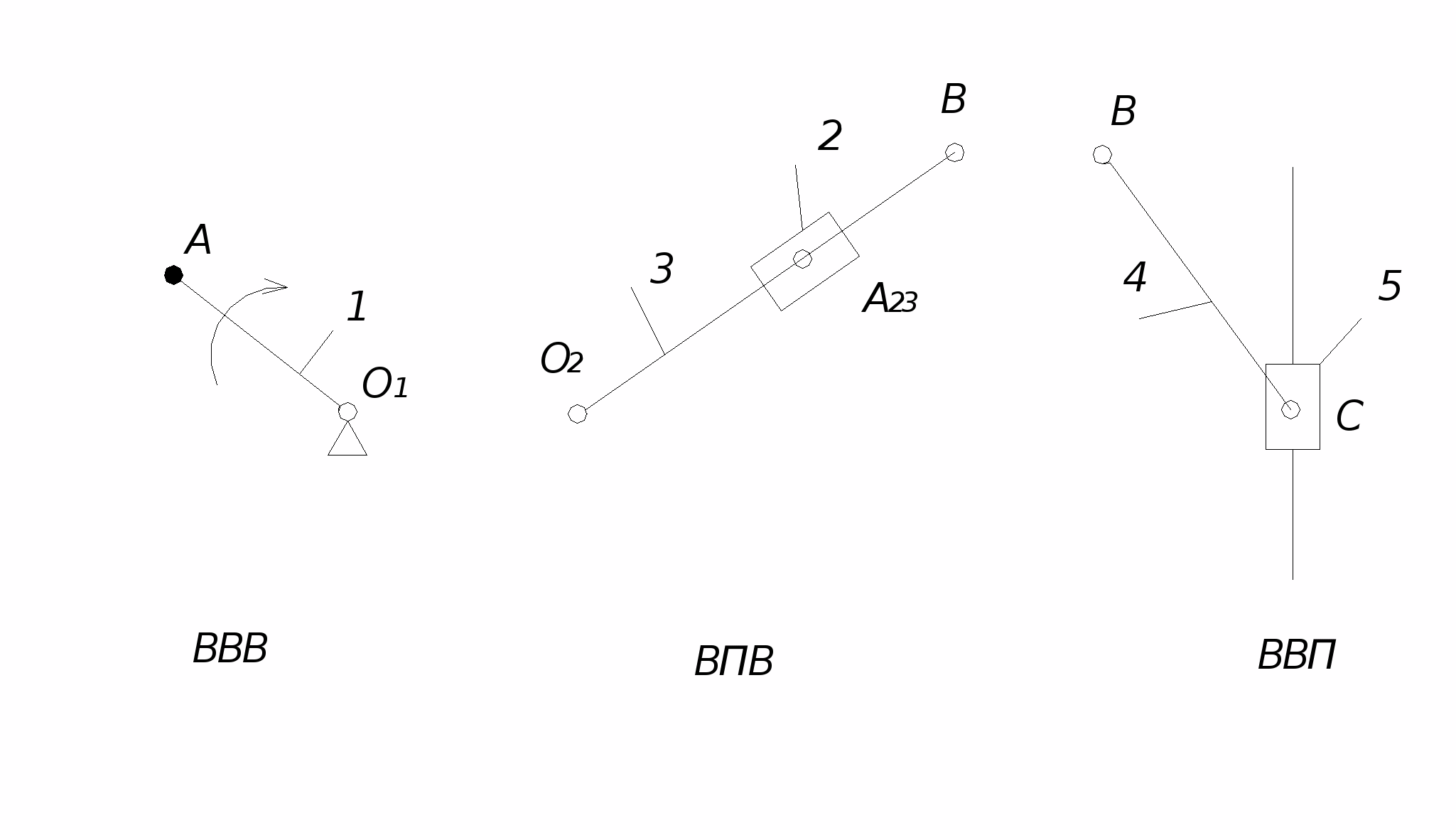 Деление механизма на структурные группы; определение класса, порядка и вида групп Ассура.