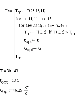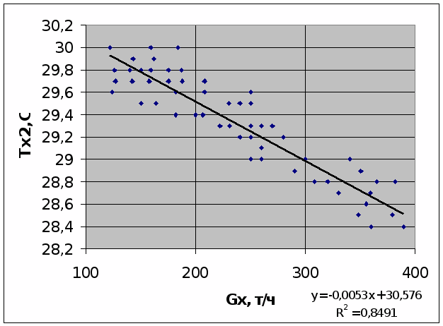 Оптимизация процесса теплообмена было проведено по статической функции объекта T(G,t) = 26,664 – 0,0036·G + 0,274·t. Выяснилось, что