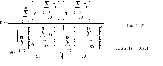 T(G,t) = 26,664 – 0,0036·G + 0,274·t