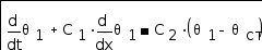 Уравнение динамики: зависимость выходной температуры нагреваемой нефти Θ>2> от температуры греющей нефти Θ>1> и температуры стенок трубки Θ>ст>.