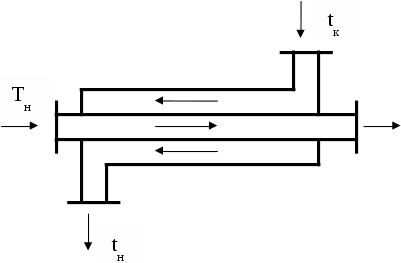 В данном случае рассматривается процесс теплообмена между двумя жидкостями, протекающие в концентрически расположенных трубках, когда нагреваемой является жидкость во внешней трубке.