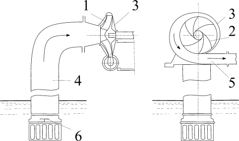 Корпус насоса патрубками з’єднаний з трубопроводами, один з яких всмоктуючий, інший – напорний. Перед пуском у дію корпус насоса та всмоктуючий трубопровод повинні бути заповнені рідиною (якщо вона не надходить у насос під напором) .